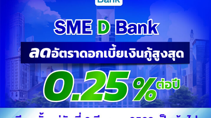 SME D Bank ขานรับนโยบายรัฐ ประกาศลดดอกเบี้ยเงินกู้สูงสุด 0.25% คู่เสิร์ฟสินเชื่อดอกเบี้ยต่ำคงที่ช่วยลดภาระเพิ่มศักยภาพธุรกิจ